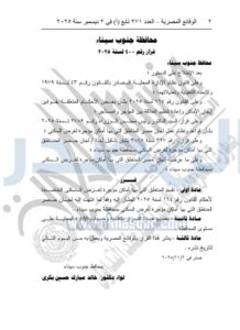 لجان حصر «الإيجار القديم» قرار محافظة جنوب سيناء، رقم ٤٠٠ لسنة 2025