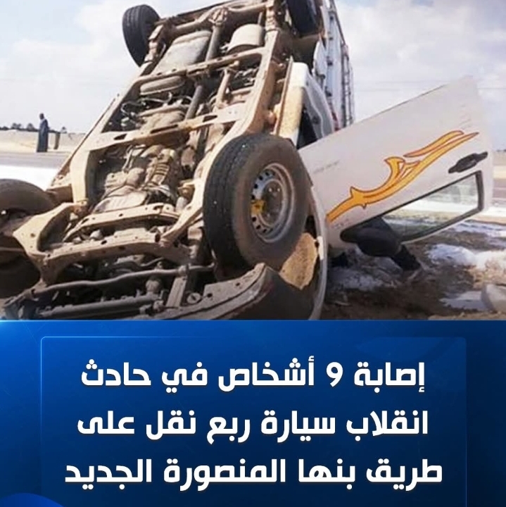متابعة القراءةأُصيب 9 أشخاص صباح اليوم الخميس في حادث مروري على طريق بنها - المنصورة الجديد، وذلك إثر انقلاب سيارة ربع نقل كانت محمّلة بعدد من العمال، وذلك أعلى كوبري جمجرة. وقد تم نقل المصابين إلى المستشفى لتلقي العلاج اللازم، فيما لم تُسجل أي حالات وفاة. الجهات المعنية انتقلت إلى